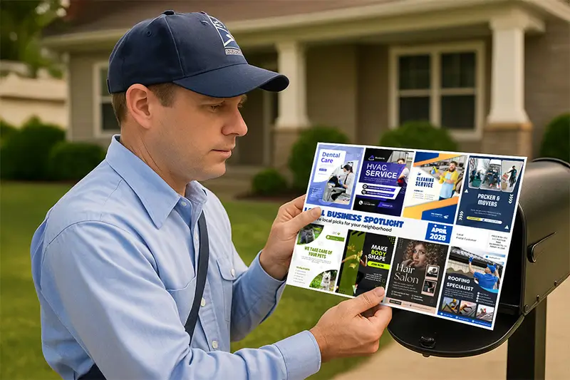 Just send your design, or info if we’re creating it for you, and we handle everything else. Layout, printing, and mailing are all covered, so you can focus on running your business with ease.